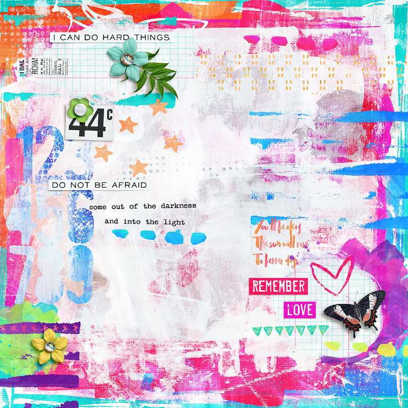 Hello internet! This blog post couldn’t have come at a better time for me. For starters, it’s my birthday today, yay! It’s also been a hard few months (make that years) personally. From losing my stepmom to trying to come to terms that another baby is just not going to happen for us, plus dealing with substance abuse from a loved one, there have been times where the mere act of breathing has been a struggle. But then, I try and remember that I have a daughter and husband who adore me, friends who have become sisters, and an amazing group of scrapfriends who keep me sane, even when they don’t know they’re doing it. The mere act of belonging to a community, of creating a page even when it doesn’t have a deeper meaning and it’s more for the sake of creating something pretty out of the chaos around me has been a life saver.