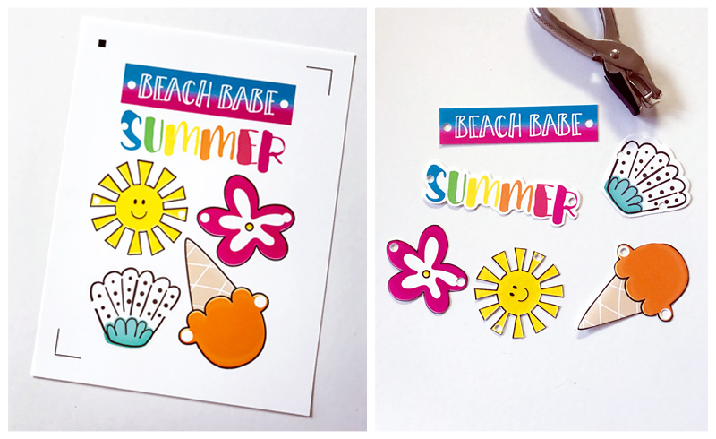 At this point, I also added the holes for the jump rings. You can do this with a hole punch after you’ve printed and cut, but you have to punch the holes before you bake the pieces.